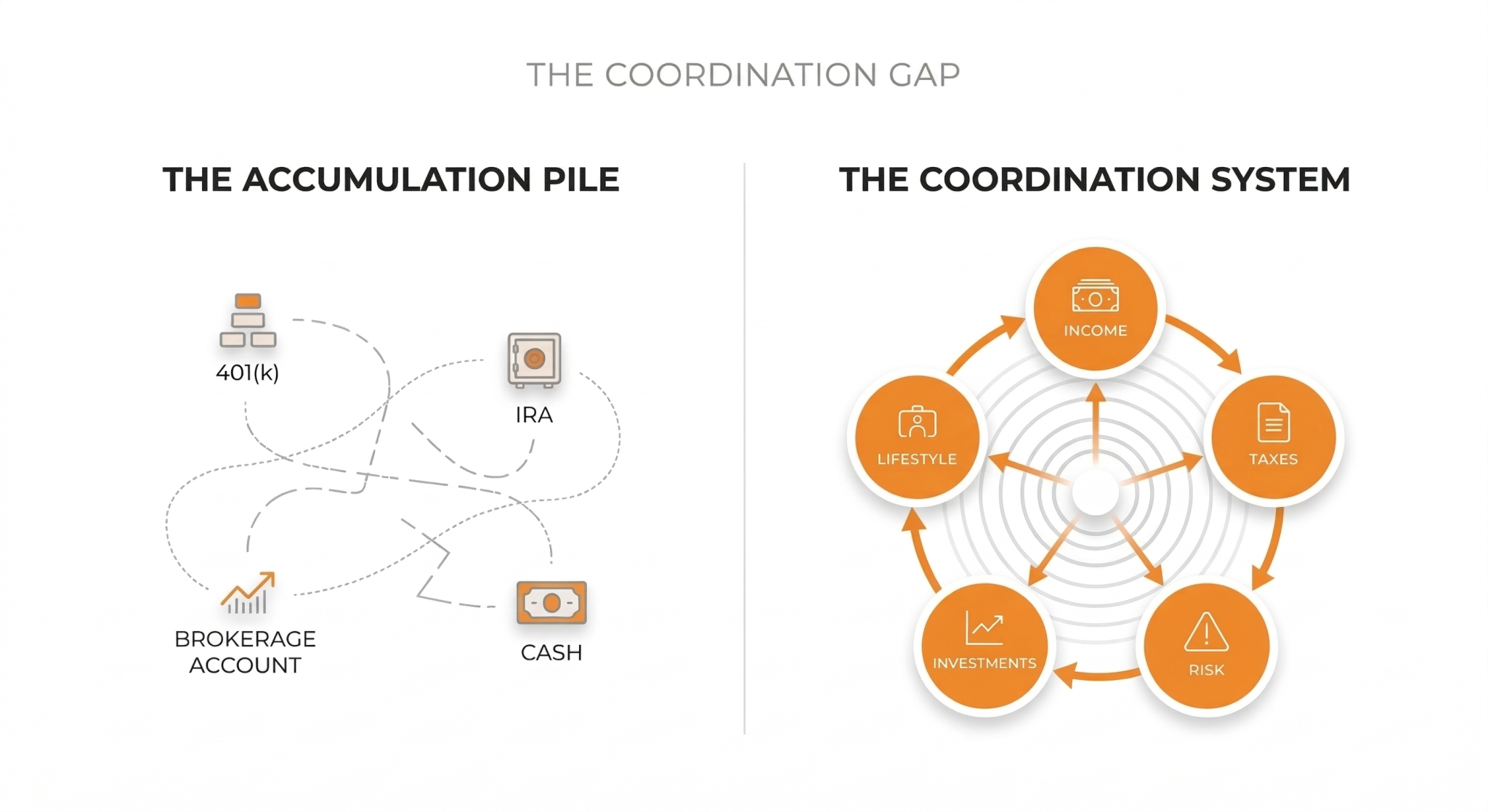 Many people have saved well, but without a coordinated system for income, taxes, and risk, they’re left guessing what they can safely spend and how everything fits together.